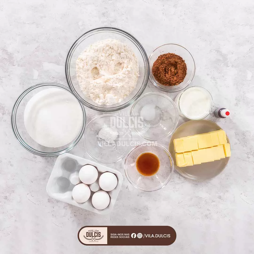 Em uma tigela média, peneire a farinha, o açúcar granulado, o bicarbonato de sódio, o sal e o cacau em pó. - Misture os Ingredientes Líquidos: