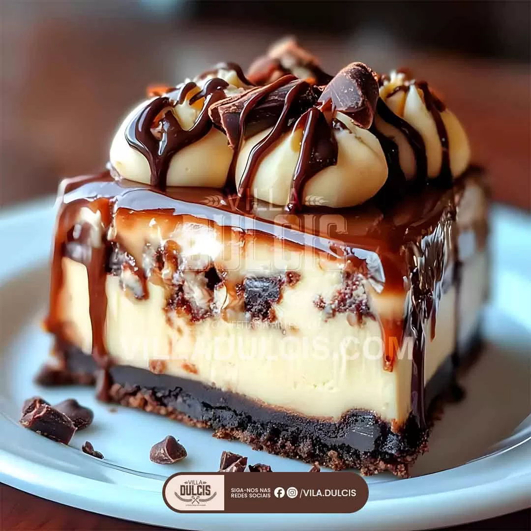 Esta sobremesa é o seu deleite preferido para qualquer ocasião, seja uma reunião festiva de feriado, uma surpresa de aniversário ou simplesmente uma desculpa para se deliciar com algo extraordinário. A melhor parte? Apesar de sua aparência e sabor sofisticados, o Cheesecake de Brownie de Tartaruga é surpreendentemente fácil de fazer. Sirva e você rapidamente se tornará o campeão de sobremesas entre sua família e amigos.