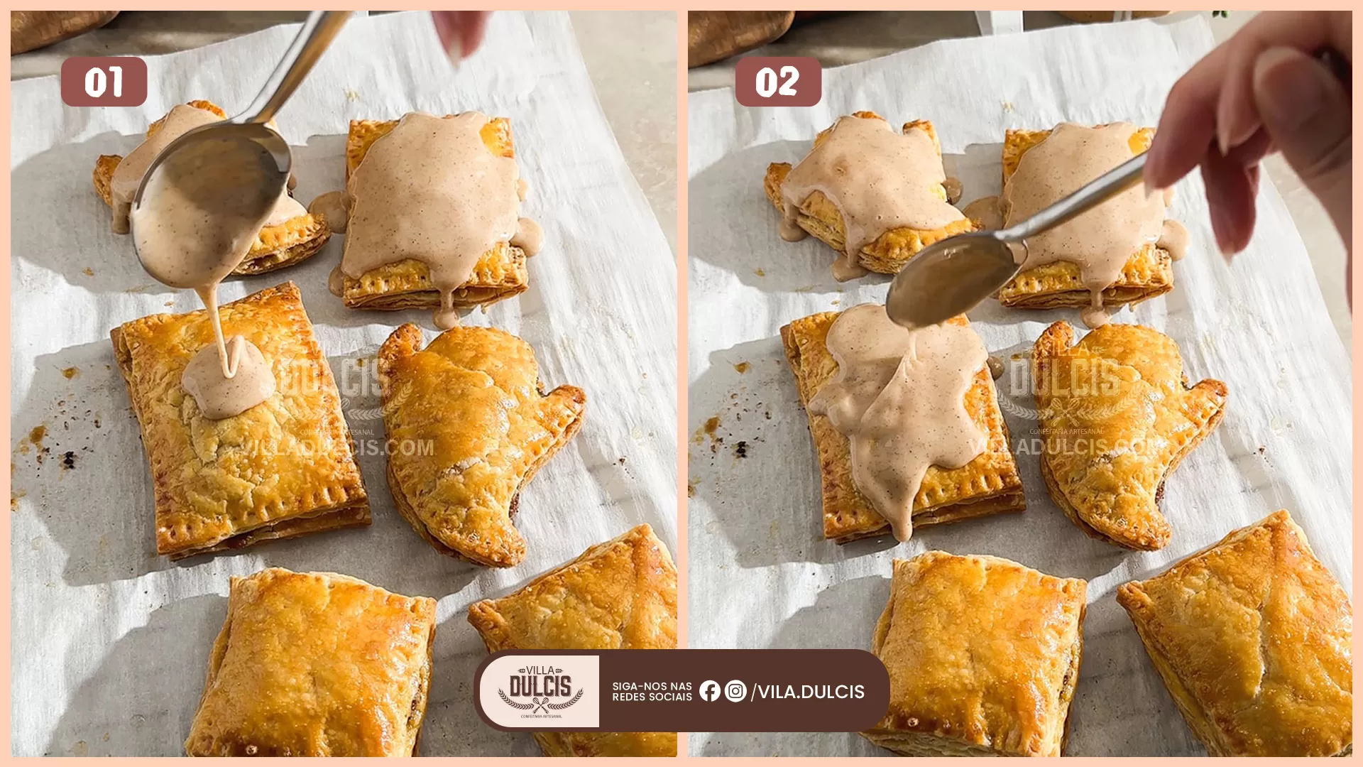 Aplique a lavagem do ovo – Pincele uma camada de ovo batido por cima da massa.