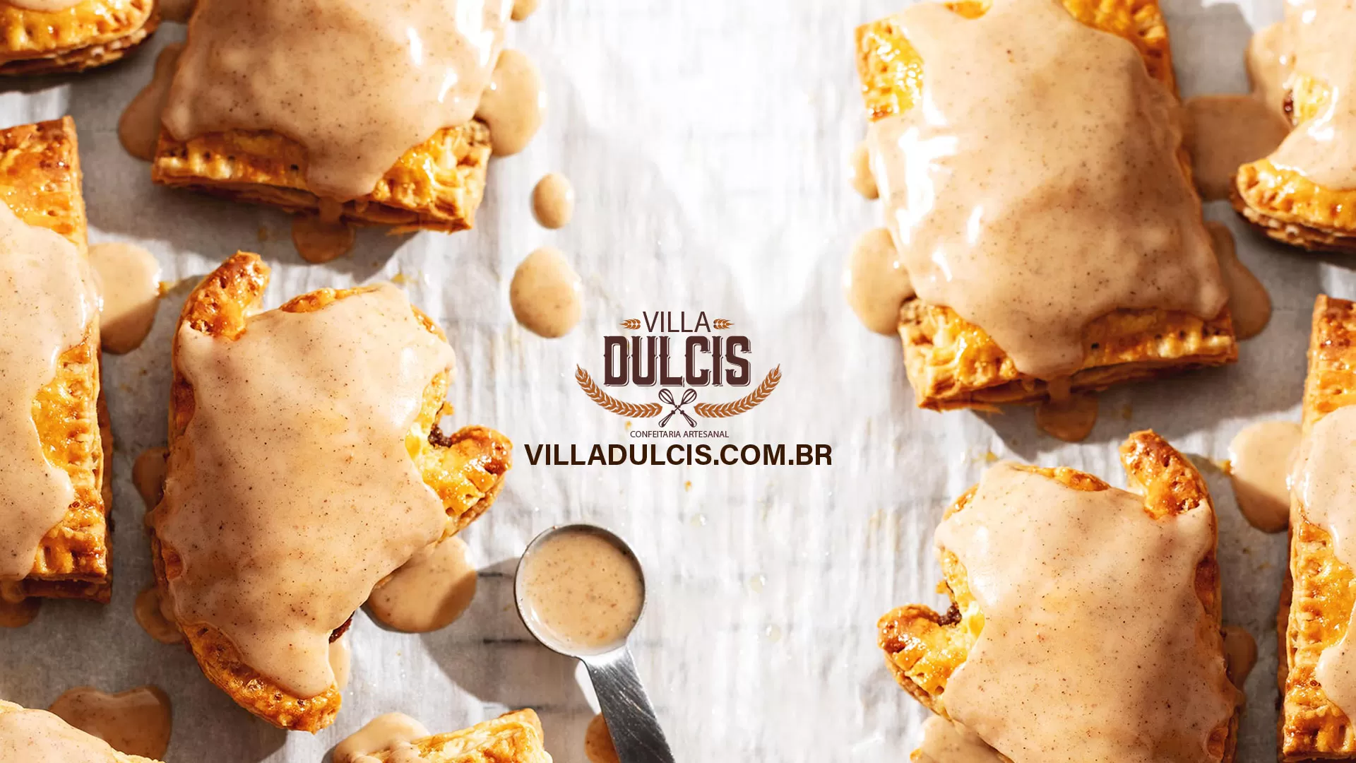 Tortas de esmalte – Regue uma colher de glacê em cima de cada torta de abóbora e espalhe para cobrir a superfície.