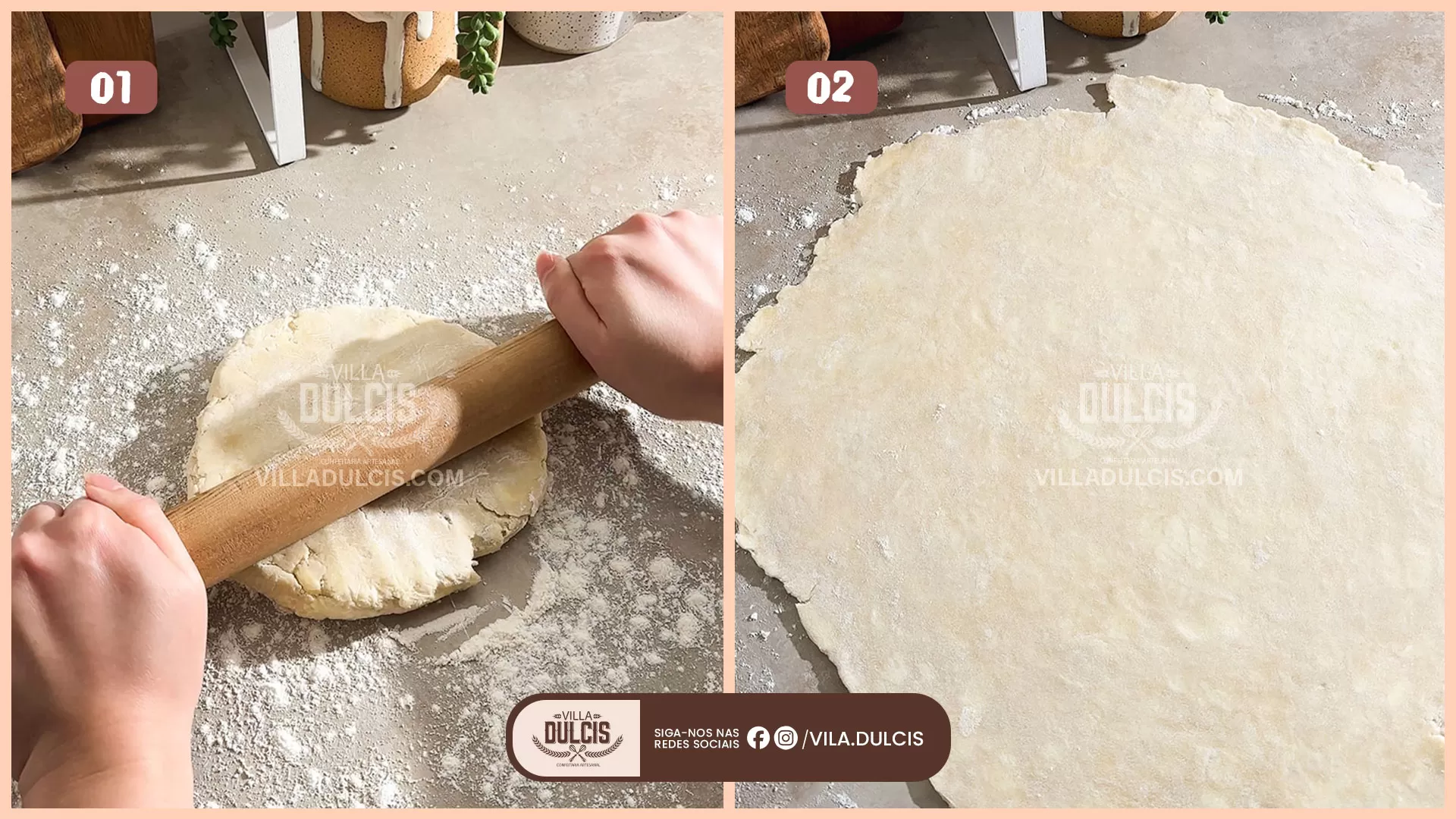 Abra a massa – Em uma superfície enfarinhada, estenda um disco de massa até cerca de 1/8 “de espessura, levantando e virando a massa ocasionalmente para evitar que grude na bancada.