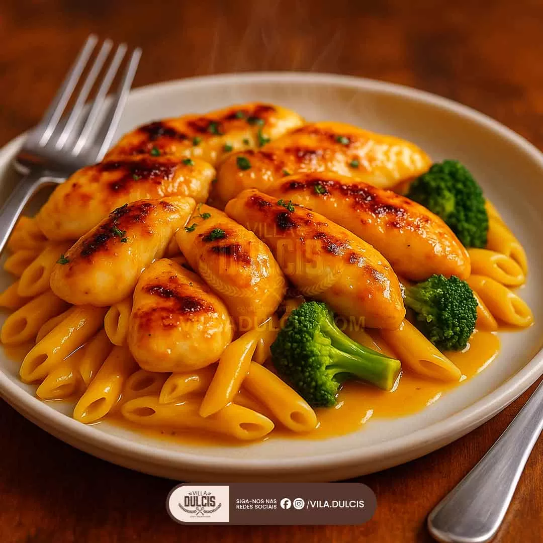 Se você deseja transformar seu jantar em um verdadeiro evento gastronômico, essa receita é a escolha perfeita. Imagine frango suculento, levemente dourado e coberto por um irresistível molho de mel e mostarda, combinado com uma massa cremosa enriquecida com cheddar derretido e brócolis crocantes. Esse prato reúne o equilíbrio ideal entre doçura, acidez e um toque de cremosidade, oferecendo uma solução prática para os momentos em família e noites aconchegantes.
